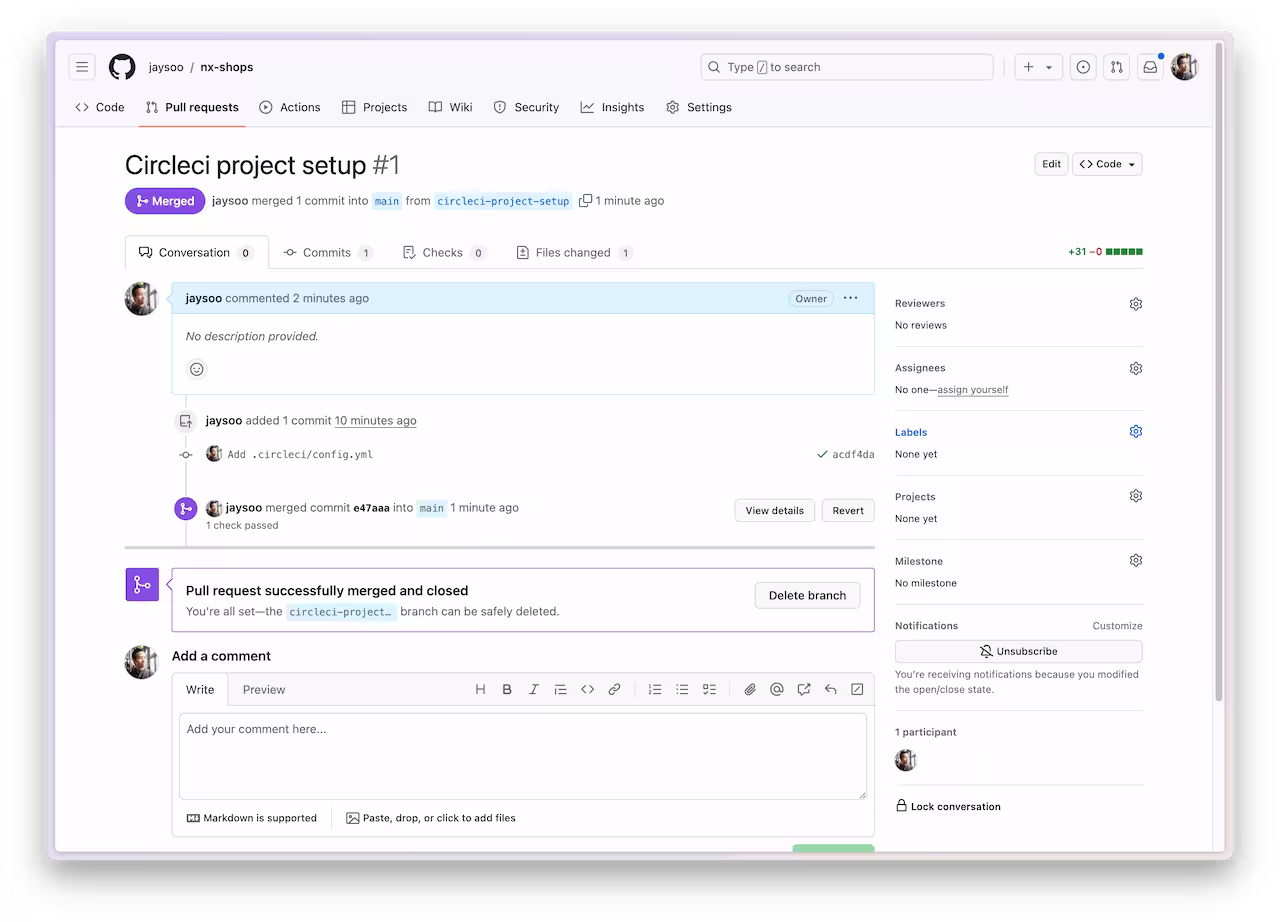 Make sure that the PR you create is against your own repository's main branch - not the nrwl/nx-shops repository.